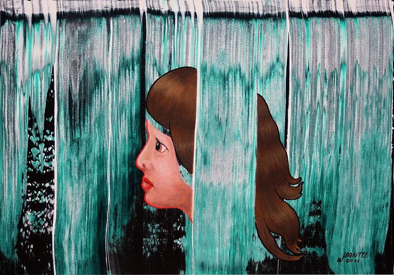 Anna und die rote Linie - Acryl auf Papier - 70 x 50 cm - 2011